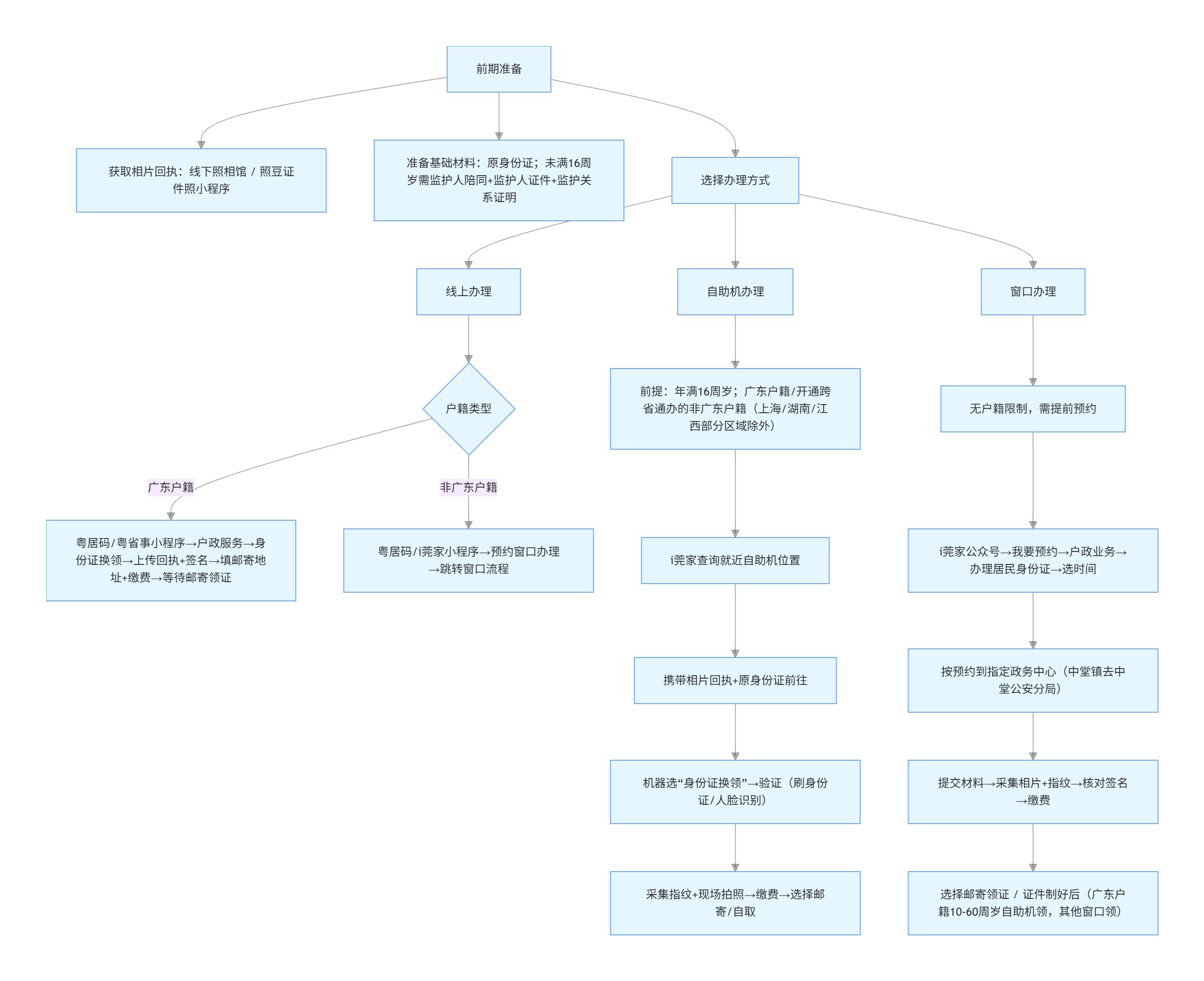 东莞身份证到期换证已实现本地与异地 “跨省通办”“全市通办”,且支持线上、自助、窗口三种办理方式,不同方式适配人群和流程有差异,以下是详细攻略: